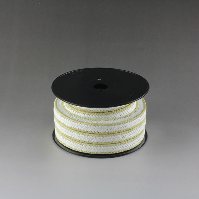 PTFE Aramid je super kombinacija ukršteno pleteno pakovanje posebno dizajnirano sa podmazanim čistim PTFE-om na prednjim stranama i specijalnim žutim filamentima od sintetičkih vlakana na uglovima. Zbog svoje guste i homogene konstrukcije sa više vlakana, pakovanje je najpogodnije za sve tečnosti uključujući korozivne hemikalije, čak i pod uslovima izuzetno visokog pritiska. Pakovanje ima izuzetno dobru dimenzijsku stabilnost, otpornost na puzanje i nije toksično. Zaptivka neće stvarati vanjska opterećenja na klipovima koja oštećuju i brtvu i klip pod visokim pritiskom.